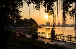 Hôm nào trời nắng đẹp bạn sẽ thấy góc đường này có rất nhiều thứ thú vị: mấy bác dựng chân máy ảnh đứng thờ thẫn, một vài đôi nam nữ ngồi ôm ấp trên ghế đá, mấy ban Tây lông đi vòng quanh … Tất cả đều có một mục đích chung là ngồi hòng để chờ chụp cảnh hoàng hôn Hồ Tây.